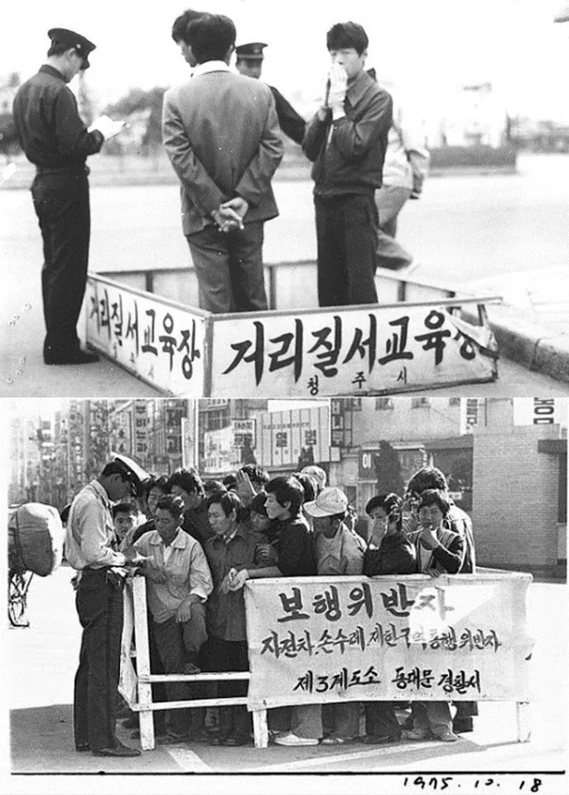 During the 1970s, when South Korea began its transformation to an economically developed country, people were publicly shamed to enforce traffic rules. If you were caught jaywalking, you were forced to stand in the box of shame for 30 minutes.