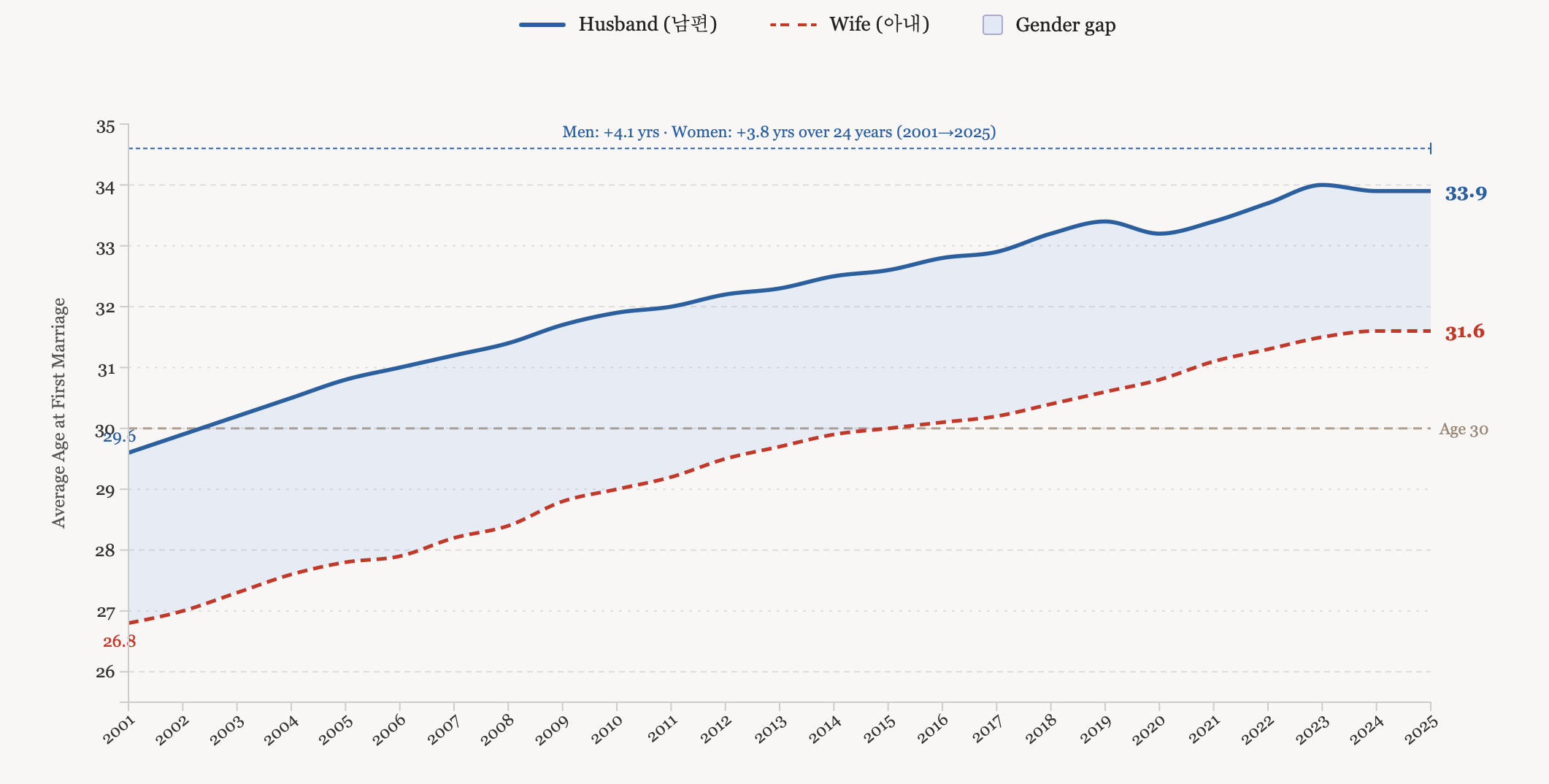 Data shows that Korean husbands with a foreign wife divorce at roughly three times the rate of Korean–Korean couples, while Korean wives with a foreign husband divorce at about twice the rate. By the numbers alone, the safest bet appears to be a Korean marrying a Korean. But if you do feel the butterflies in your stomach when you see him or her, then perhaps the more relevant question is not what the divorce rate is, but whether you are both willing to do the harder work that cross-cultural marriages genuinely demand: the language, the in-laws, the unspoken expectations carried across borders. The data captures what went wrong for others. It says nothing about what you are capable of getting right.